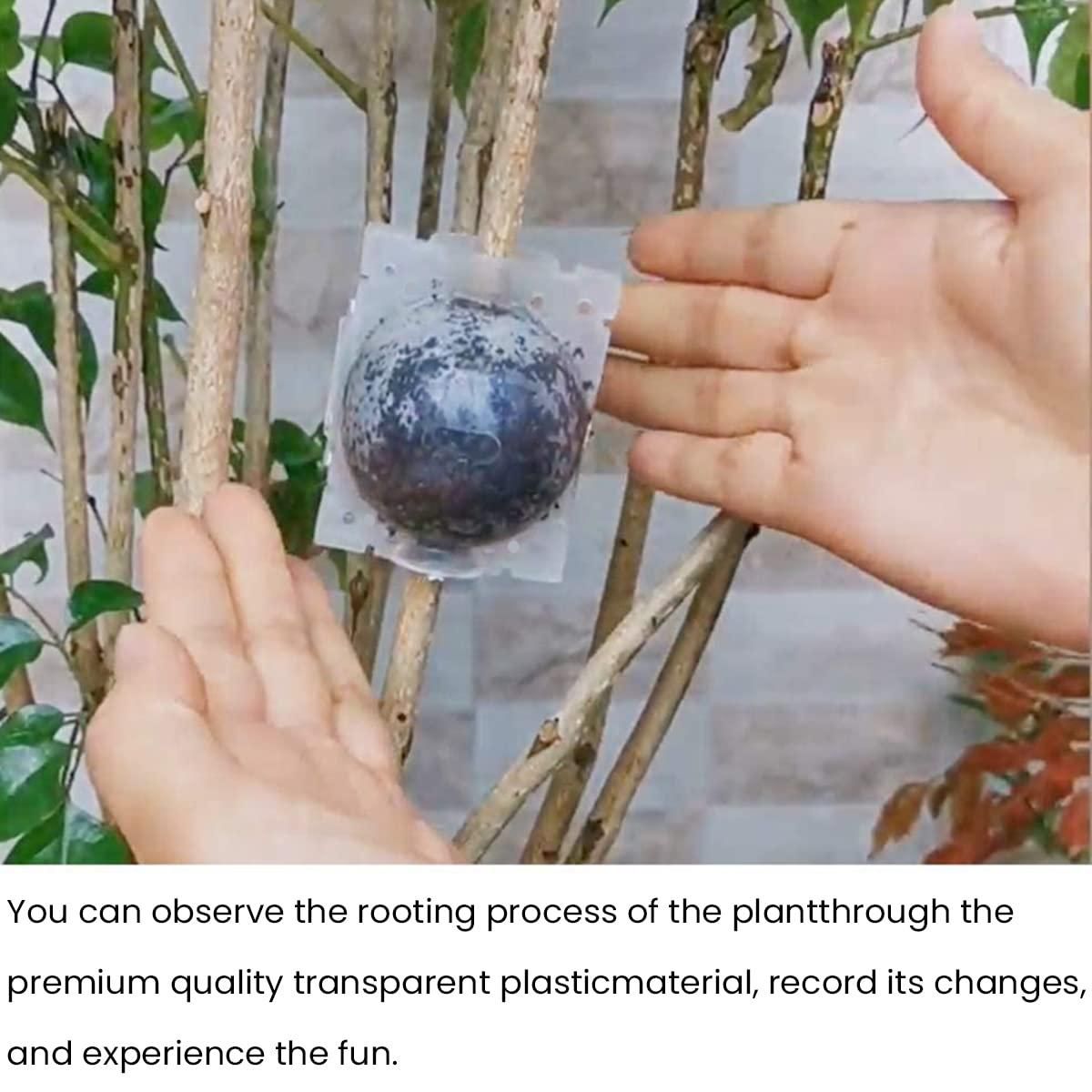 Product Name: Rooting Balls Pack of 5 with Pot Mix ComboPackage Contain: It has 5 Pack of Rooting Balls Pot Mix ComboMaterial: Plastic Product Dimension: 8 x 8 x 8 cmWeight: 100 gmAbout this item: These 5 transparent balls iare designed for plant propagation, helping branch to have roots more efficient and safely. These small containter is for providing soil substrate for ready-to-grafting branches, so they can have roots in air layering. Perfect for various plants, flower, rose branches, etc.The plant rooting grow boxes are made of eco friendly quality PP plastic, sturdy and durable makes them not easy to deform, reusable. The ball diameter is 8cm, suitable for branches of 7-12mm.